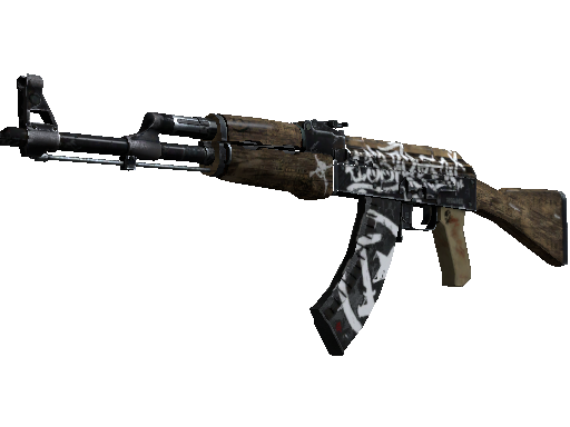 Powerful and reliable, the AK-47 is one of the most popular assault rifles in the world. It is most deadly in short, controlled bursts of fire. It has been distressed, block printed, and painted with graffiti.